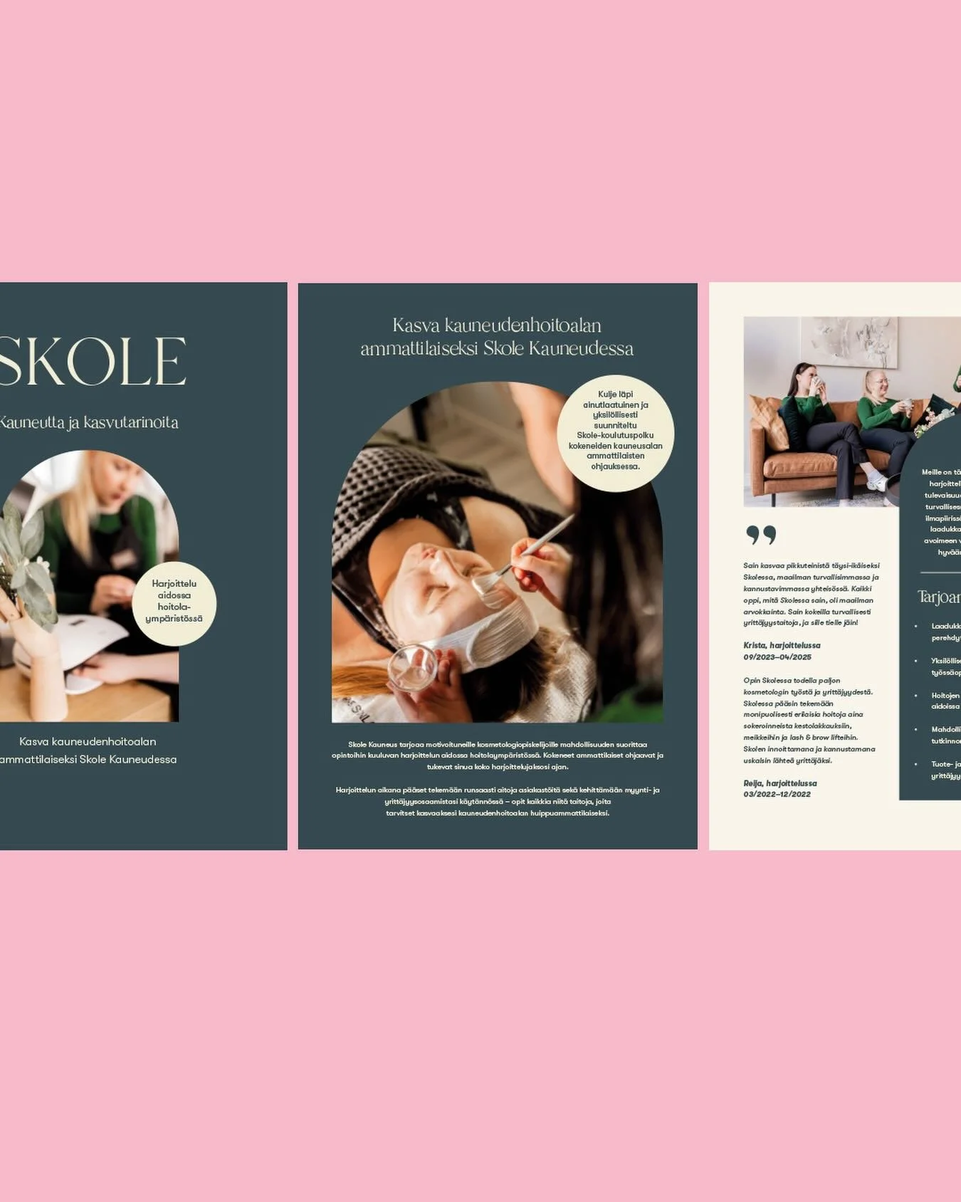 Teen graafista suunnittelua monipuolisesti eri kanaviin ja tarkoituksiin. Erityisesti innostun julkaisujen ulkoasusuunnittelusta, visuaalisista ilmeistä ja logosuunnittelusta.